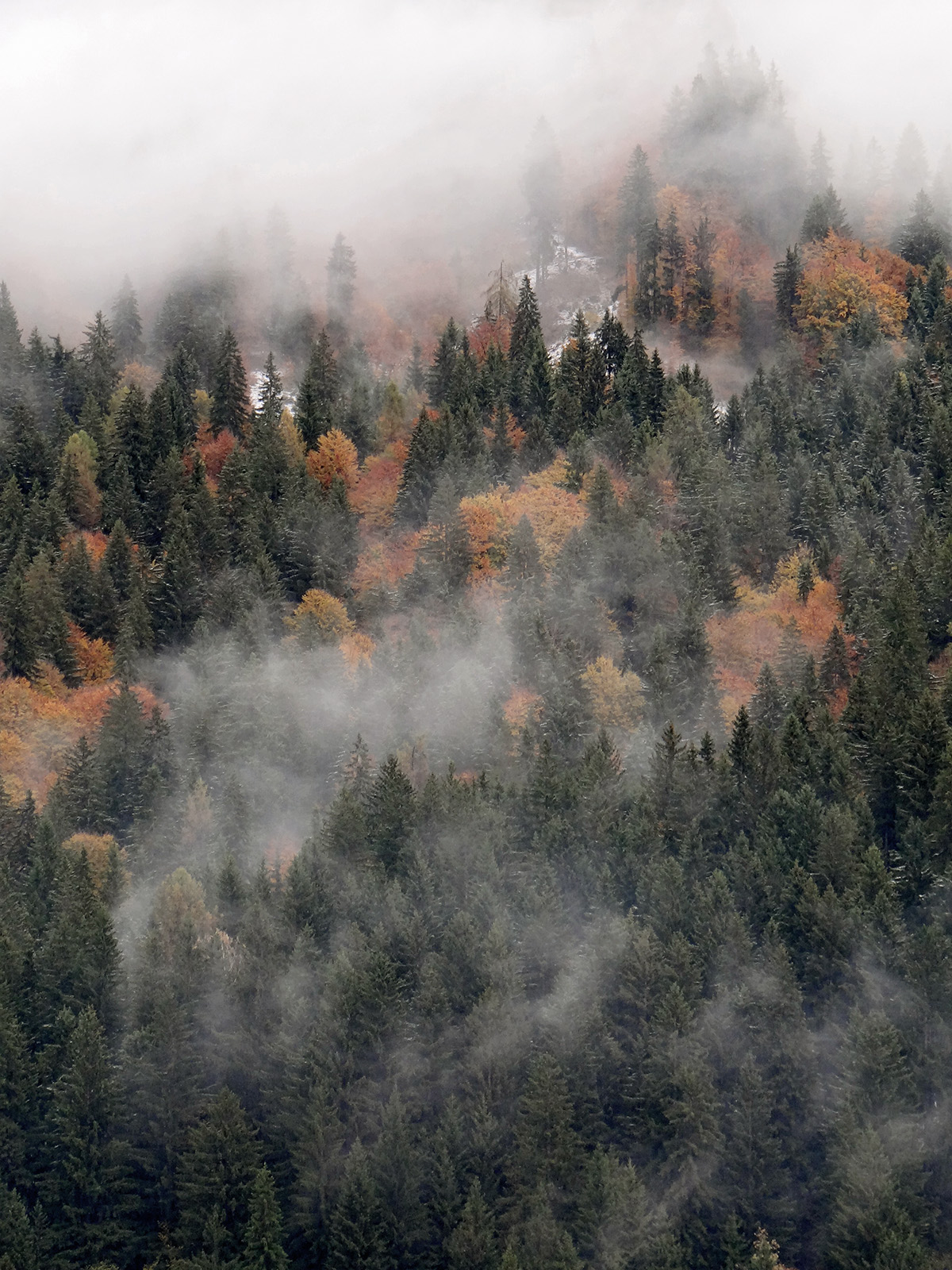 Wenn ich im Wald auf Einkehr bin, fühle ich mich fast immer sicher und geborgen. In allem sehe ich Zeichen, dort und da leuchtet etwas auf: die goldenen Blätter im dunklen Schatten, leuchtender Raureif an den müden Grashalmen oder noch rote Brombeeren an ihren violetten Dornenzweigen. Während ich hin und her streife und das Schöne entdecke, stehen die Bäume still und wachen.