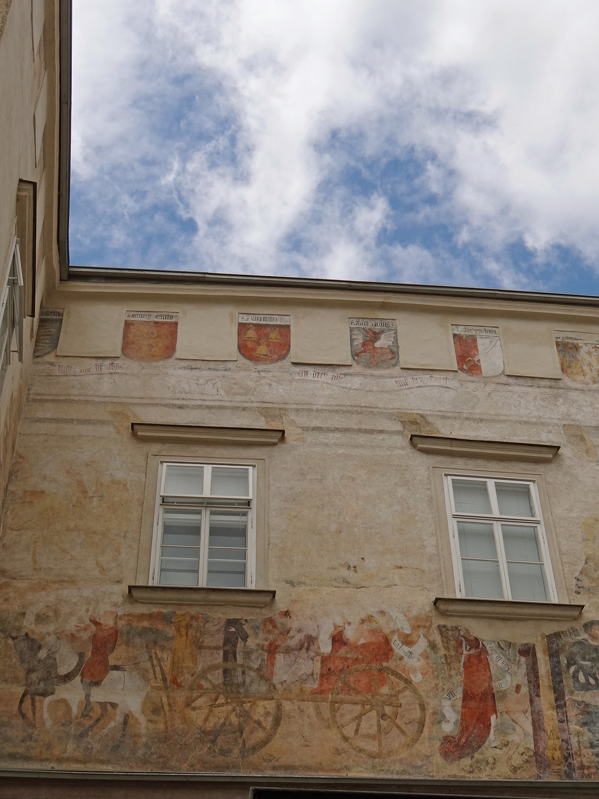 In Krems verliebte ich mich bereits in meiner Jugend – nach einer Exkursion im Gymnasium war mein Reiseherz entflammt. Und so habe ich die Stadt an der Donau über die Jahre immer wieder besucht und jedes Mal etwas Neues entdeckt. Krems war ab dem 16. Jahrhundert eine aufgeschlossene, pulsierende und reiche Handelsstadt, was sich in der Architektur zeigt. Zu sehen gibt es viele schöne aufwendige Reliefdekorationen mehr und gut erhaltene Fresken an den Fassaden der Bürgerhäuser, auffällige Erker, repräsentative Eingangstore, eigensinnige architektonische Spielereien, das berühmte Sgraffitohaus, die Gozzoburg … Schaut auch bei der Dominikanerkirche vorbei, die zu einem ungewöhnlichen Ausstellungsort umfunktioniert wurde. In der Häuserzeile auf der anderen Platzseite liegt mein Lieblingshaus in Krems: das ehemalige Mesnerhaus, ein schmaler Bau mit vanillefärbiger Fassade und üppiger Reliefdekoration. Besuchen solltet ihr auch den Bauernmarkt am Pfarrplatz (nur samstags) und zu Mittag das nostalgische Gasthaus Jell am Hohen Markt. Wenn ihr Glück habt, gibt es Ofenschweinsbratl in Kümmelsauce mit Erdäpfelknödel – ein Gedicht! Aber unbedingt reservieren!