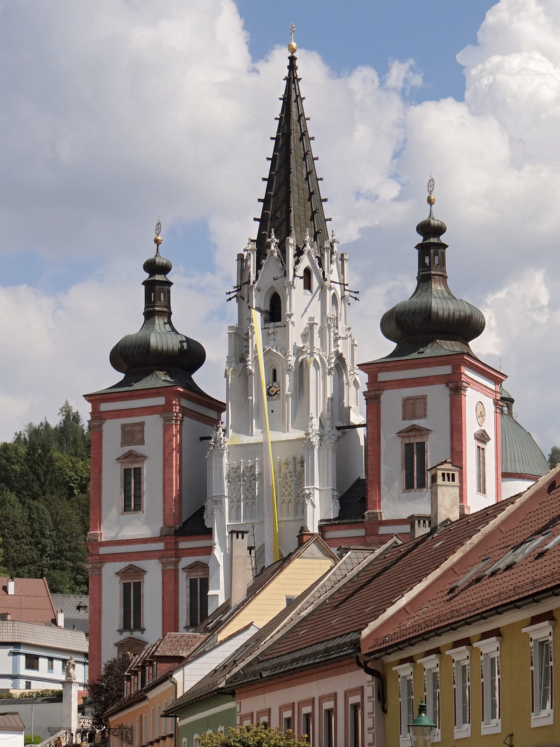 Mit der Kirche hab‘ ich es nicht so. Mariazell ist trotzdem mein Kraftort – bereits auf der Fahrt dorthin geschehen Wunder. Kaum bin ich von der Autobahn abgefahren und füge mich in die Kurven der Landstraße, werde ich ruhig. Je näher Mariazell kommt, umso einsamer wird die Gegend: kaum Häuser, kaum Menschen, nur grüne Berghänge. Meine Augen streifen
