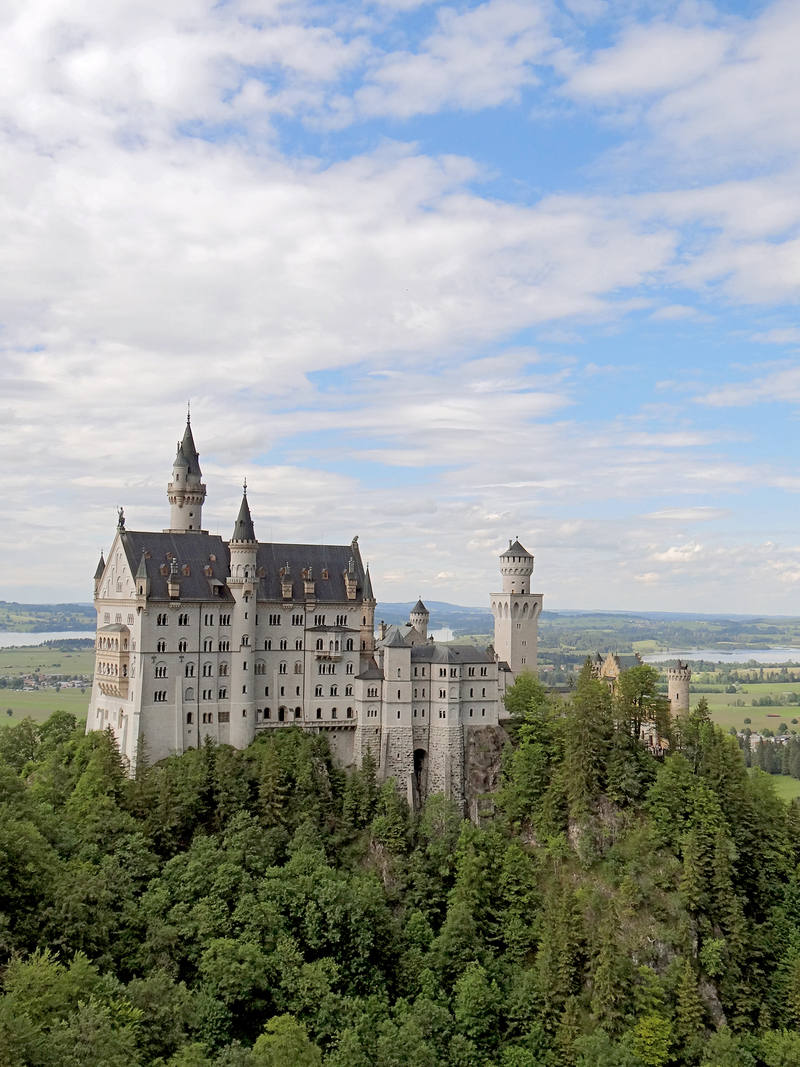 Hier treffen sich König Ludwig II und Rübezahl: Schloss Neuschwanstein im Allgäu repräsentiert den Archetyp eines Märchenschlosses – erbaut auf einem hohen Felsen, mit schlanken Türmen und einem romantischen Konzept. Es gibt einen Sternenhimmel im Schlafzimmer, eine Sonne im Thronsaal, Blätterwerk auf den Wandmalereien ... und gegenüber das Hotel Rübezahl,