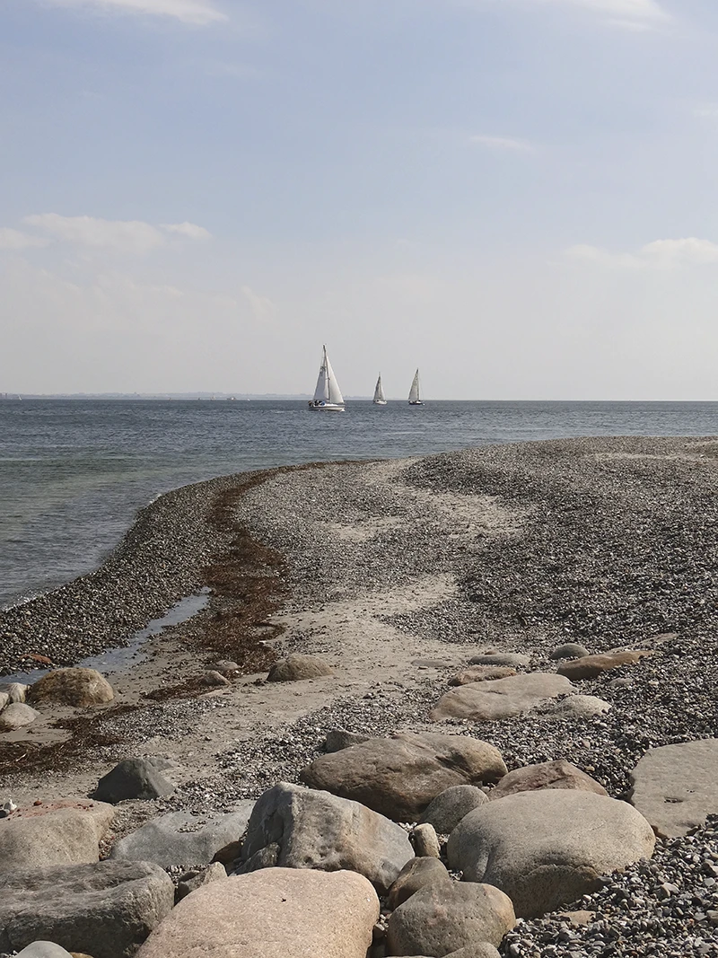 Kürzlich in Dänemark: Dort saß ich lange unter einem Obstbaum auf einem Stein und schaute auf den Øresund. Die Schiffe segelten vorbei, das goldbraune Gras ließ sich vom Wind schaukeln, es war sehr still in mir. Irgendwann stand ich auf mehr und ging bis zu den Knien ins Wasser. Es war kristallklar, die Kiesel blinkten im Sonnenlicht und die relativ starke Strömung zog an meinen Beinen – es fühlte sich an, als ob ich in mein Sein gespült werde. Plötzlich wurde mir bewusst, dass es in meinem Leben mehr fließen soll. Weniger Perfektionismus, weniger Selbstkontrolle, mehr Vertrauen und mehr Hingabe. So soll es sein, nach meinem Urlaub im Sein.